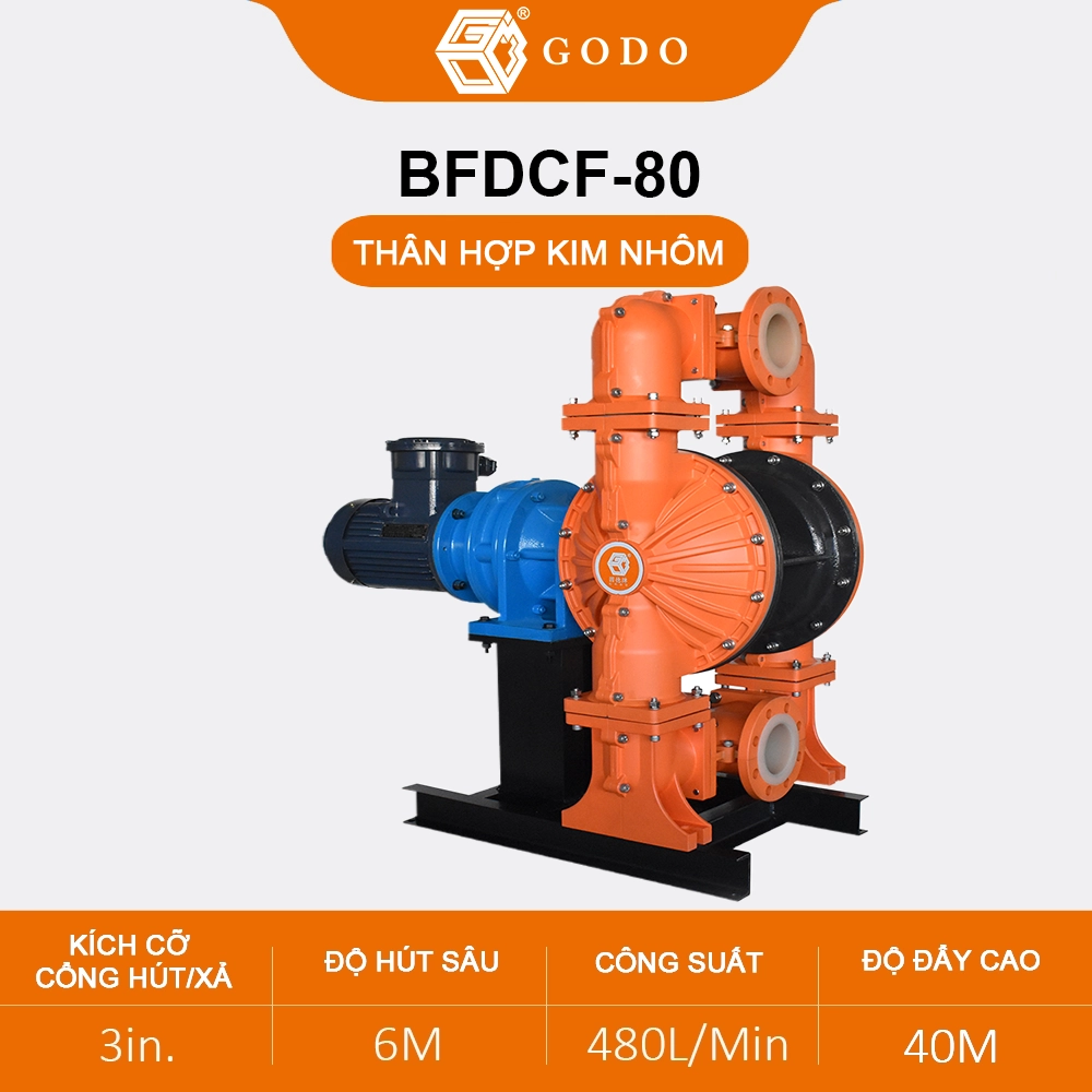 Máy bơm màng điện lót Flo GODO BFDCF-80 – Giải pháp bơm lưu lượng lớn cho công nghiệp nặng